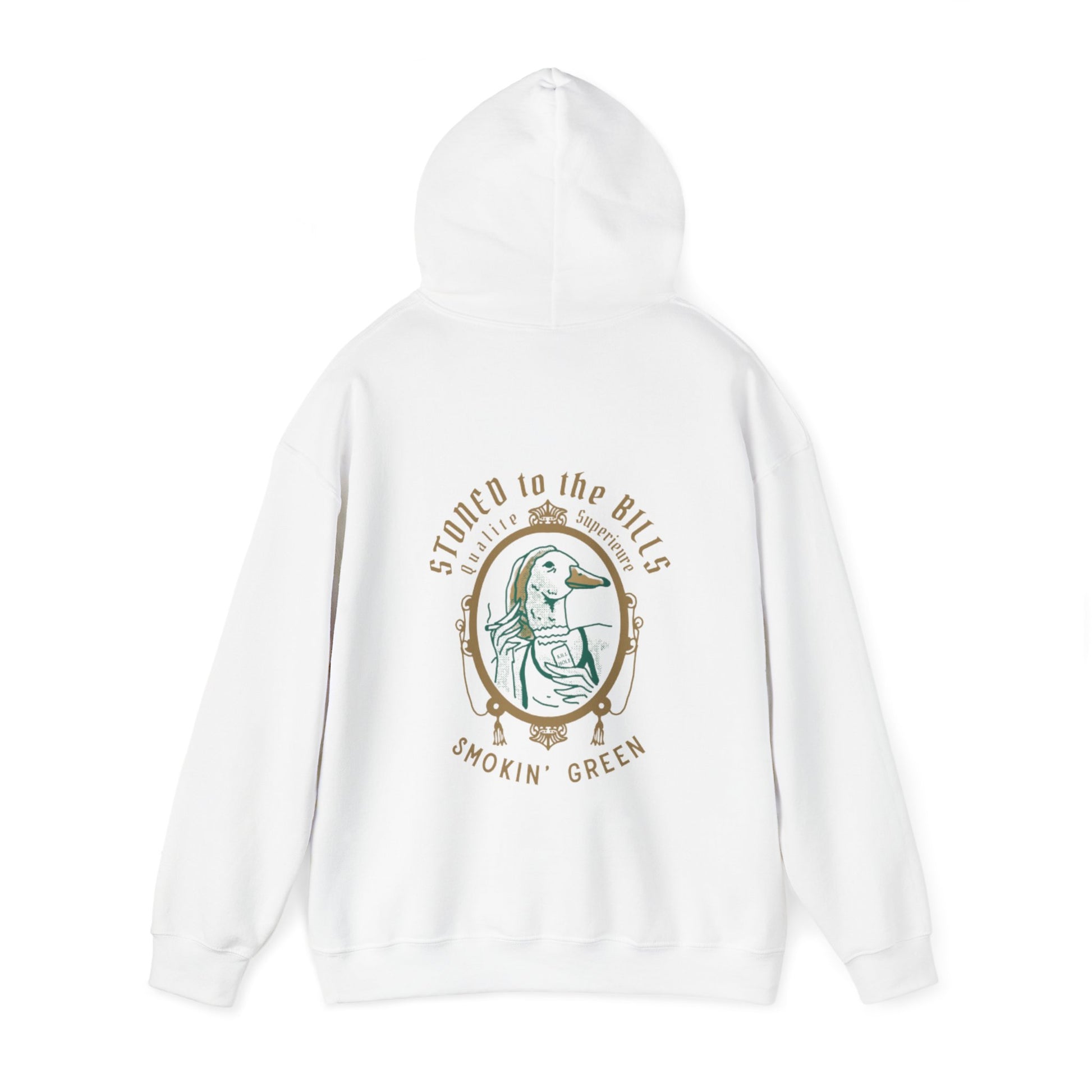 Smoking Green duck hunting hoodie by Kill Hole Outdoors. This unisex heavy blend hooded sweatshirt is relaxation itself. Made with a thick blend of cotton and polyester, it feels plush, soft and warm, a perfect choice for any cold day. In the front, the spacious kangaroo pocket adds daily practicality while the hood's drawstring is the same color as the base sweater for extra style points.